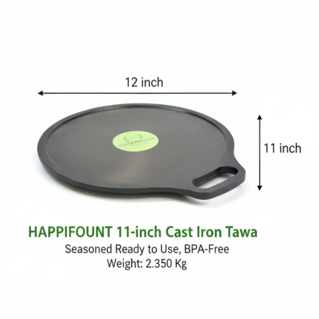 Experience the art of making perfect golden, crispy dosas with the Happifount Premium 11-Inch Cast Iron Dosa Tawa. Designed for both home kitchens and professional cooking, this heavy-duty iron tawa delivers authentic hotel-style results every single time. Upgrade your kitchen with traditional strength and modern usability โ built for everyday Indian cooking.๐ Happifount Kitchenware โ We Bring Smile to Every Kitchen. Why Choose Happifount Dosa Tawa? โ Pre-Seasoned & Ready to Use โ No extra seasoning required โ Heavy-Duty Pure Cast Iron Construction โ Excellent Heat Retention & Even Heat Distribution โ Long-Lasting & Durable โ Built for Generations โ Ideal for Daily Cooking Perfect For Cooking Crispy Golden Dosas Product Highlights โญ Most Ordered Product ๐ Traditional Cooking Choice ๐ฅ Heavy. Healthy. Long-Lasting. Made for Indian Kitchens. ๐ Fast Dispatch Available Shipping Information ๐ Shipping charges calculated based on your location. ๐ We ship across India and also offer international shipping beyond borders.