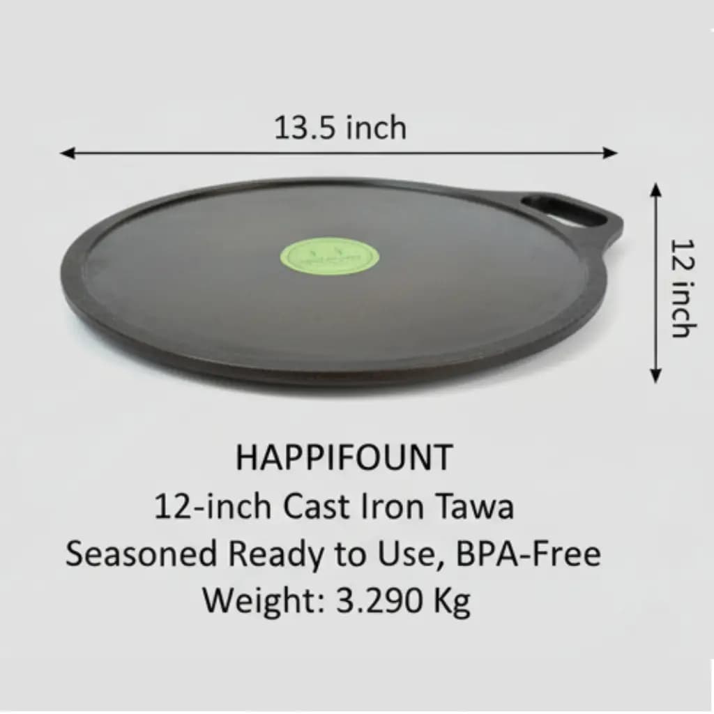 Experience the art of making perfect golden, crispy dosas with the Happifount Premium 12-Inch Cast Iron Dosa Tawa. Designed for both home kitchens and professional cooking, this heavy-duty iron tawa delivers authentic hotel-style results every single time. Upgrade your kitchen with traditional strength and modern usability โ built for everyday Indian cooking.๐ Happifount Kitchenware โ We Bring Smile to Every Kitchen. Why Choose Happifount Dosa Tawa? โ Pre-Seasoned & Ready to Use โ No extra seasoning required โ Heavy-Duty Pure Cast Iron Construction โ Excellent Heat Retention & Even Heat Distribution โ Long-Lasting & Durable โ Built for Generations โ Ideal for Daily Cooking Perfect For Cooking Crispy Golden Dosas Product Highlights โญ Most Ordered Product ๐ Traditional Cooking Choice ๐ฅ Heavy. Healthy. Long-Lasting. Made for Indian Kitchens. ๐ Fast Dispatch Available Shipping Information ๐ Shipping charges calculated based on your location. ๐ We ship across India and also offer international shipping beyond borders.